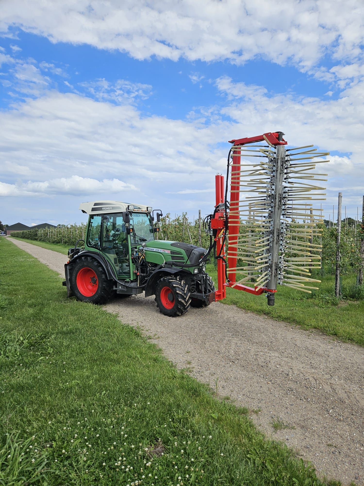 BOFIX systems liet op de Fruitteelt Vakbeurs in Houten een vernieuwing zien op gebied van mechanische dunning: een vruchtdunningsmachine. In tegenstelling tot de bekende draadjesmachines voor bloesemdunning is de vruchtdunningsmachine uitgerust met rubberen staven. Het geribbelde rubber slaat vruchtjes vanaf 20 mm van de boom. “Voordeel van vruchtdunning is dat je beter ziet wat je doet dan tijdens bloesemdunning, omdat je dan nog niet weet hoe de zetting zal zijn”, vertelt Maurice Bouwens van BOFIX systems. Uit praktijkproeven in Duitsland het afgelopen jaar bleek dat de schade aan de blijvende vruchtjes beperkt was. “Je ziet direct na het dunnen wel wat streepjes op de vruchten, maar dat trekt al snel weg. Waar mechanisch was gesnoeid hadden we uiteindelijk 1,8% schade, bij handgesnoeide bomen was er 2,5 à 3% schade”, aldus Bouwens.
