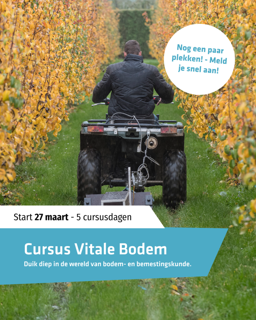 Op 27 maart aanstaande start de cursus Vitale Bodem op de Fruit Tech Campus. Deze opleiding is ideaal voor de fruitteler van vandaag én morgen, die alles wil weten over de ins en outs van bodem en bemesting.