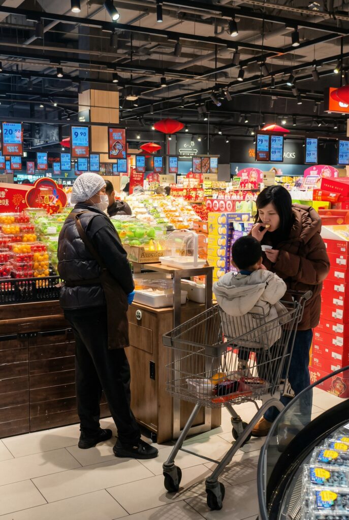Foto: Tessa proeverij in Chinese supermarkt
