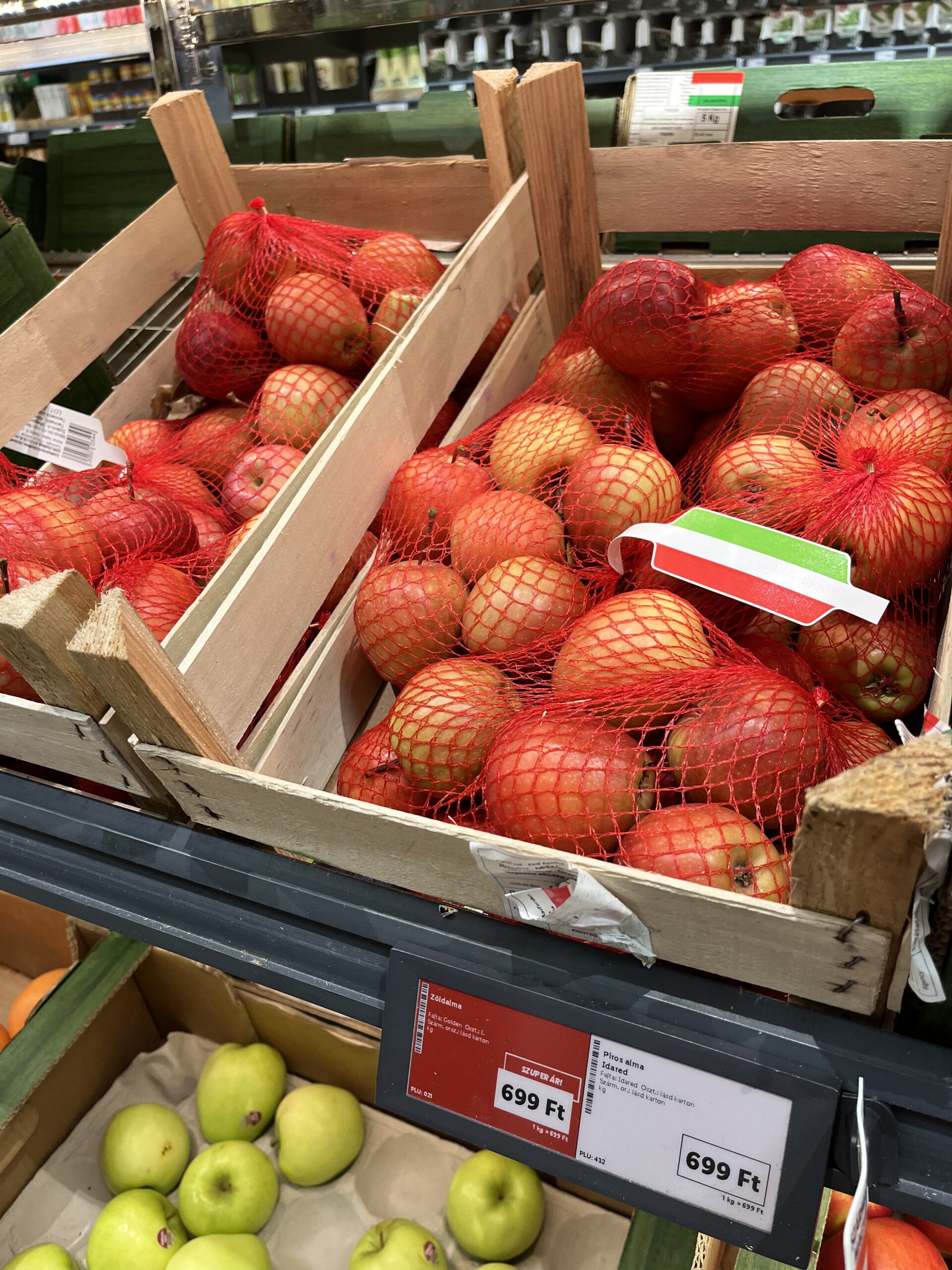 In zijn algemeenheid is het assortiment aan fruit in de Hongaarse supermarkten relatief beperkt. De focus ligt hierbij ook op Hongaars product – wat wordt aangeduid met een vlaggetje – en rassen die in Oost-Europa populair zijn, zoals bijvoorbeeld Idared-appels. De hoeveelheid importfruit is beperkt. Conference uit Nederland en/of België is vaak wel te vinden, maar de kwaliteit laat dikwijls te wensen over.