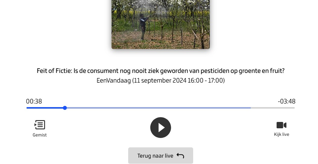 NPO Radio 1 dook er met hun Feit of fictie op in en vroeg Martin van den Berg, emeritus-hoogleraar Toxicologie aan de Universiteit van Utrecht, en Wieke van der Vossen van het Voedingscentrum naar hun visie. De uitspraak dat nog nooit iemand ziek is geworden bleek te stellig, want de wetenschap weet nog niet alles over de effecten van verschillende bestrijdingsmiddelen op gezondheid. Toch moeten mensen zich vooral niet laten weerhouden om voldoende groente en fruit te eten, het is immers een zekerheid dat die een positief effect op je gezondheid hebben.