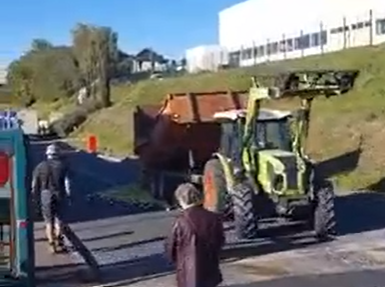 De fruittelers hadden enkele trekkers met een lading rotte appels meegenomen. De appels werden op de weg voor de fabrieksingang gestort en overreden. Wat de telers vooral steekt is dat de fabrikant appels in Spanje en Polen koopt, terwijl in de regio meer dan genoeg appels verkrijgbaar zijn.