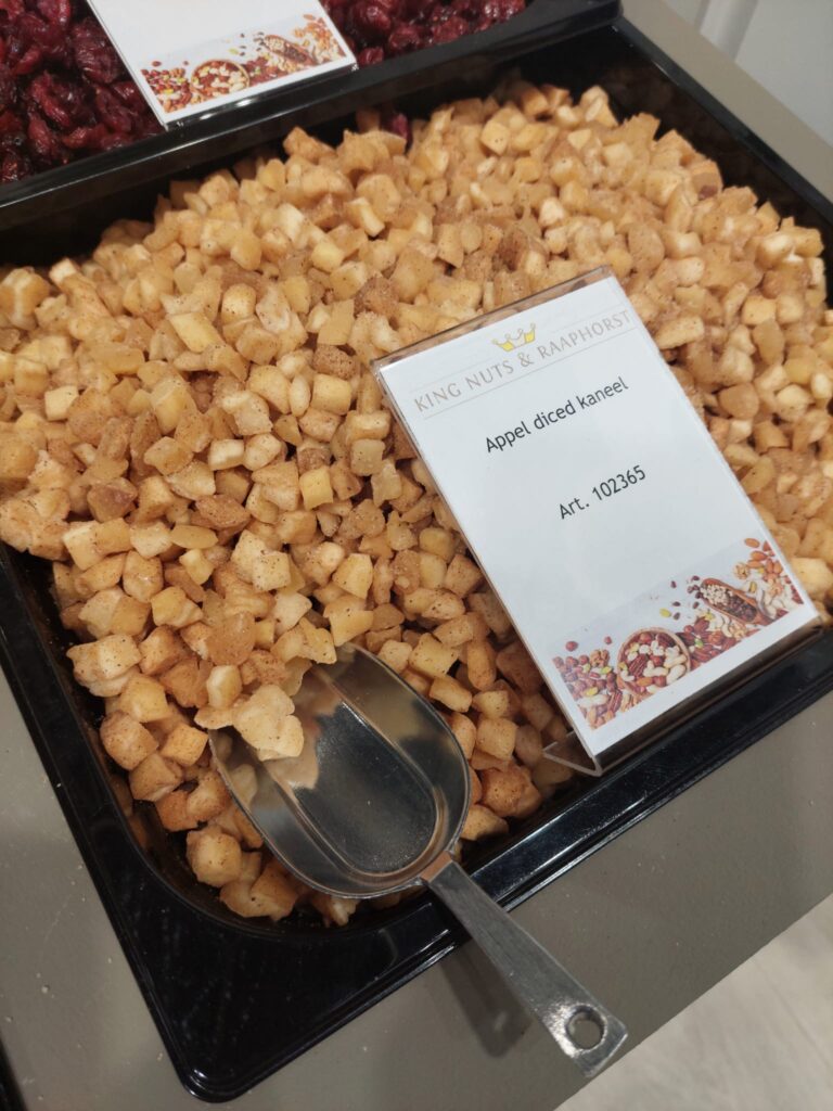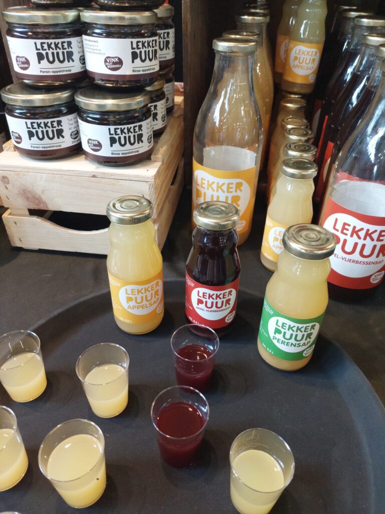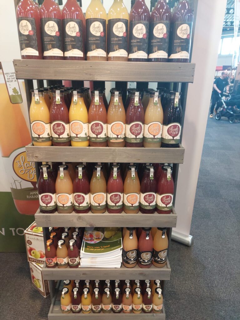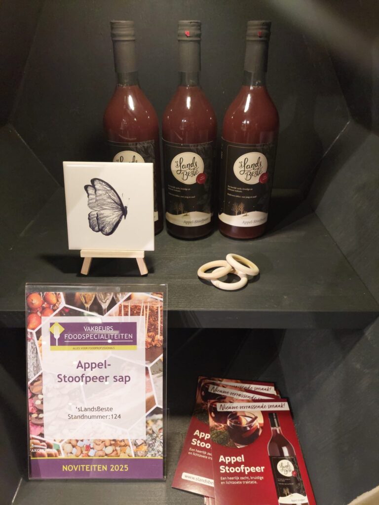 Ook Vermeulen uit Biddinghuizen toonde een noviteit van haar appelsapmerk ’s Lands Beste: een sap van stoofperen en appelsap verpakt in een luxe wijnfles met een feestelijke uitstraling voor de feestdagen. Andere producten die werden getoond waren onder meer appelblokjes en appel chuncks met kaneel. Natuurlijk ontbraken ook de fruitsappen niet en werd getoond dat zachtfruit zich perfect leent voor bijvoorbeeld het garneren van kaas.