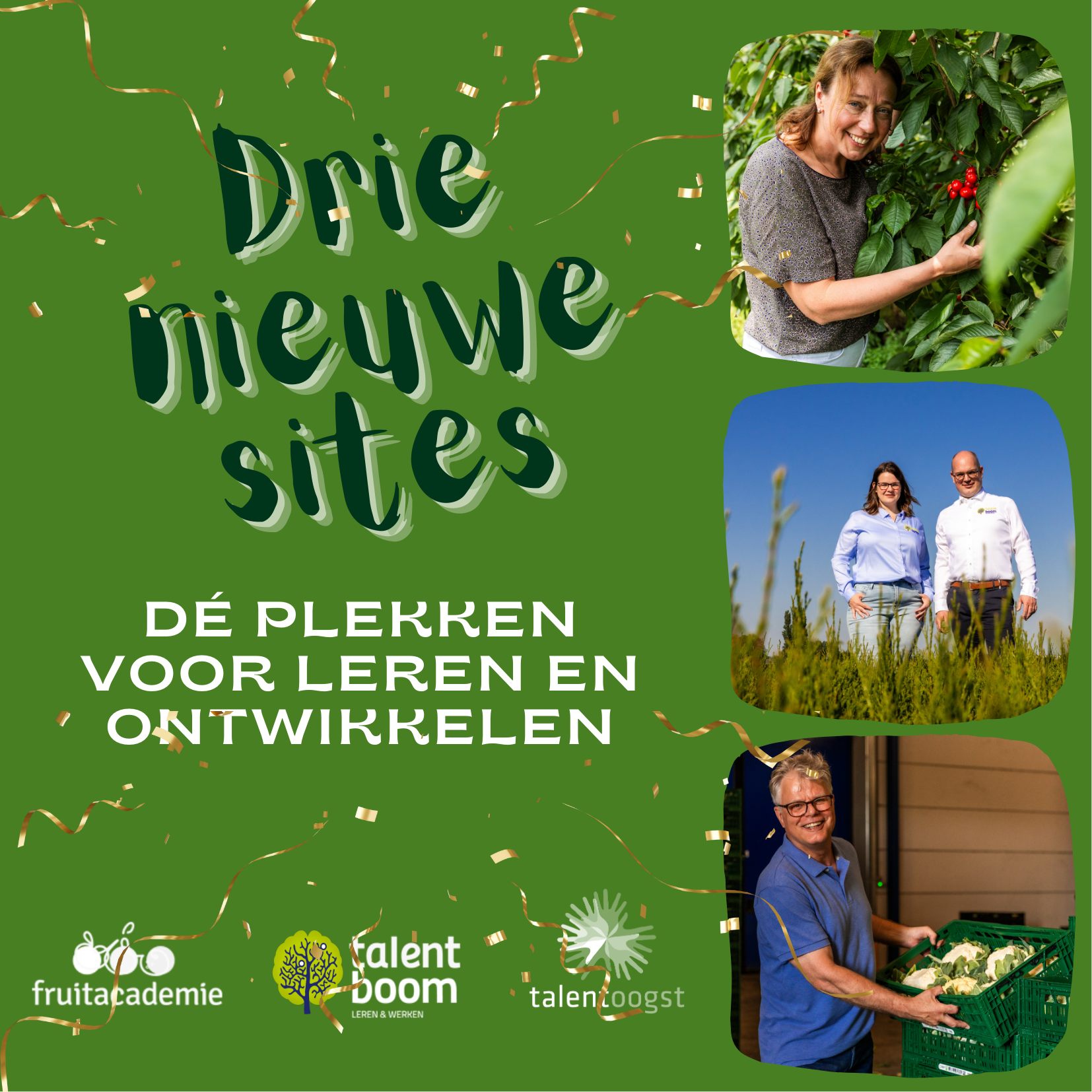 Ook de websites van Talentoogst en Talentboom zijn vernieuwd. Talentoogst.nl is dé centrale plek voor werknemers en werkgevers die zich willen ontwikkelen in de akkerbouw en vollegrondsgroenteteelt. Talentboom.nl is dat voor de boomteelt en de Fruitacademie.nl is het platform voor leren en ontwikkelen in de fruitteelt.