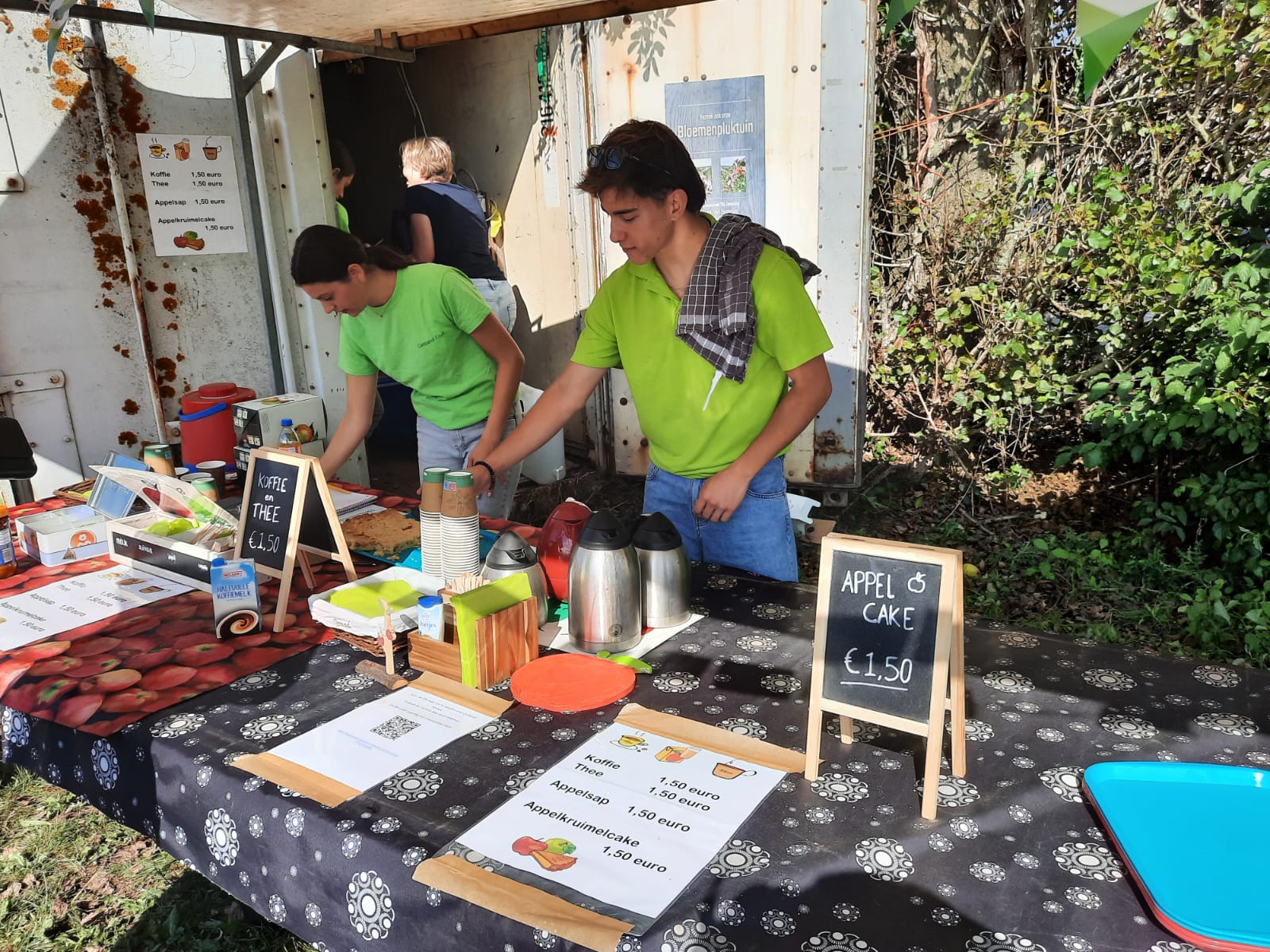 Voor de kinderen was er een speurtocht met appelbingo uitgezet en voor de oudere kinderen een detective-spel, waarbij ze moesten ontdekken wie de appel heeft gestolen. “Dat heeft m’n dochter georganiseerd, die is actief in de scouting. Van de scouting hebben ze ook geholpen om alle spullen op locatie te krijgen en klaar te zetten. Verder hadden we in de boomgaard nog allerlei wist-je-datjes over bijvoorbeeld fruitmot en dat een appel drijft en een peer zinkt, om zo de mensen te informeren”.