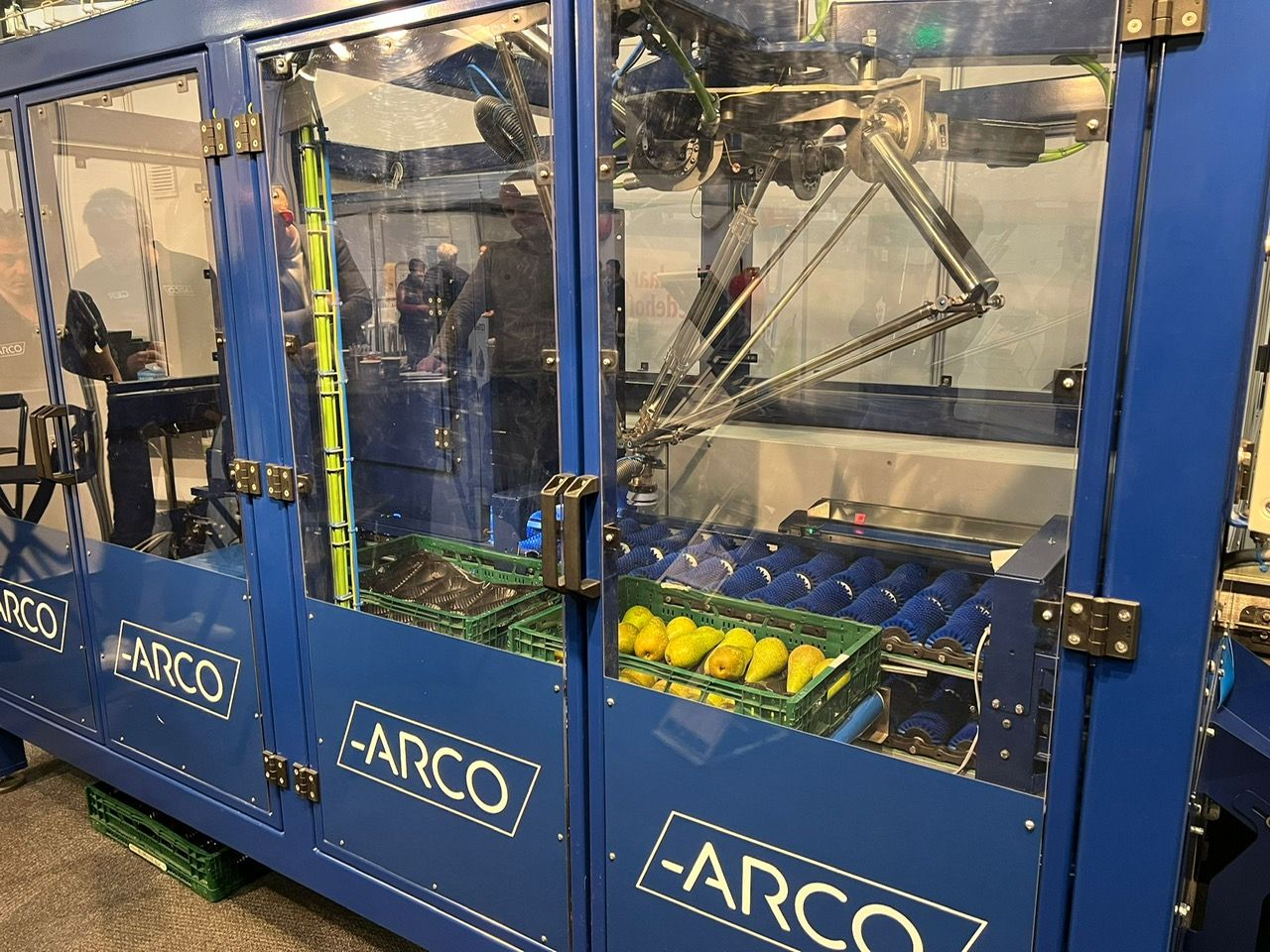 Arco Solutions uit Grubbenvorst trok op de Fruitteelt Vakbeurs grote aandacht van de bezoekers met een demonstratie van een inpakmachine die ook op kwaliteit sorteert. De machine sorteert met een vision-systeem op vorm, lengte-breedte-verhouding, uitwendige kwaliteit en is geschikt voor zowel appels als peren. De machine -het gaat om een proto-type die in de praktijk gedraaid heeft-, is bedoeld om te plaatsen bij de uitgang op een afraapband, dus voor vruchten van dezelfde maatklasse.