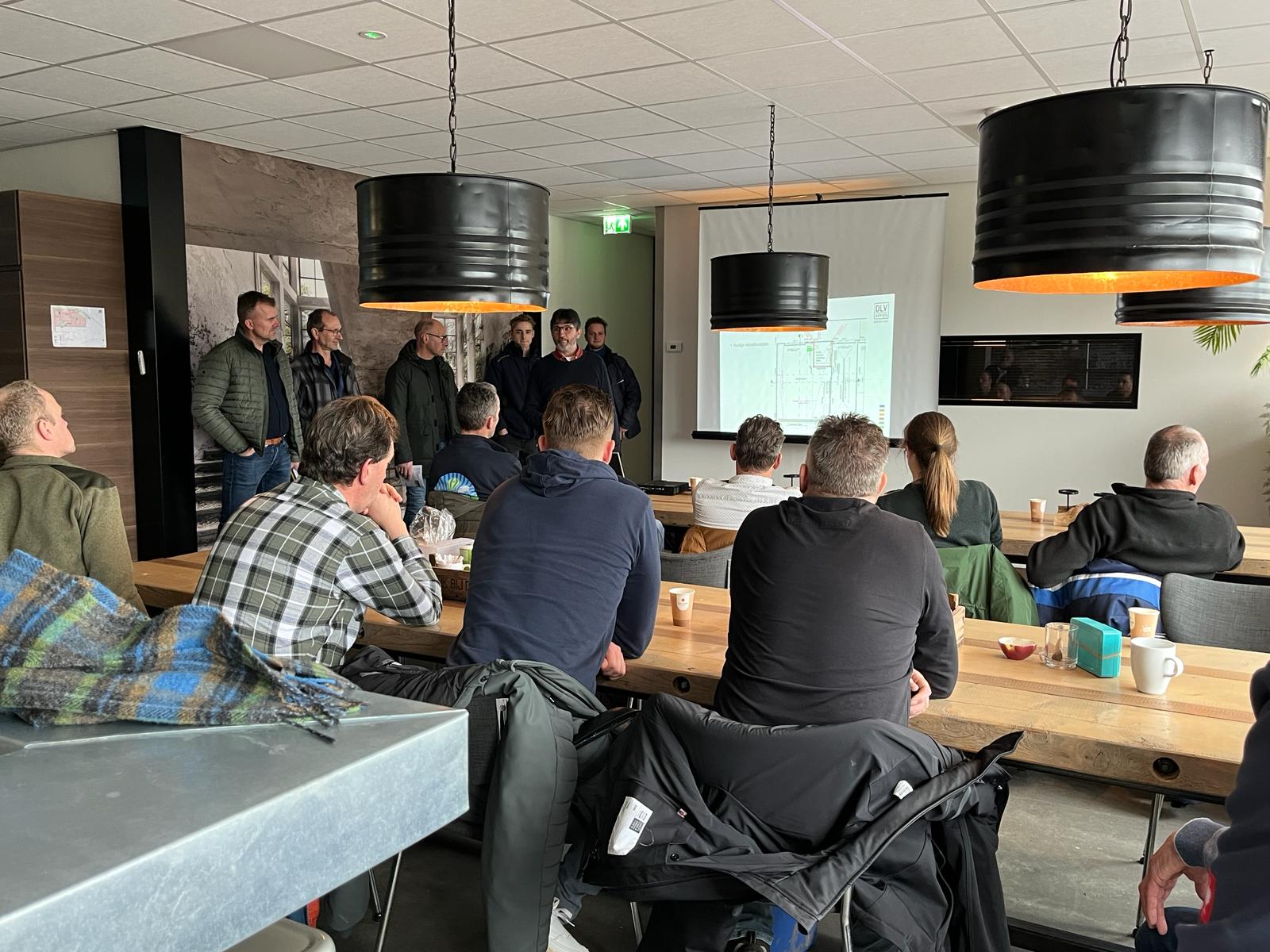 Vandaag, 22 februari, was de slotbijeenkomst bij Van den Brink Fruit in ’t Goy. Dertig deelnemers waren aanwezig bij de bijeenkomst, waar leveranciers van onder andere Easyconnect en Remdry een presentatie hielden en de deelnemers onderling informatie uitwisselden over hoe ze erfemissie op hun bedrijf gaan aanpakken. Anne van Rossum (DLV) legde uit waar een vul- en wasplaats aan moet voldoen en waar telers rekening mee moeten houden bij aanleg ervan.
