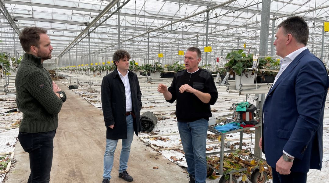 Tweede Kamerleden Derk Boswijk en Henri Bontenbal van het CDA hebben een bezoek gebracht aan de Fruitdelta Rivierenland. De NFO en Veiling Zaltbommel hebben samen het initiatief genomen om deze bijeenkomst te organiseren op het aardbeienbedrijf van Jan Goesten in Ammerzoden.