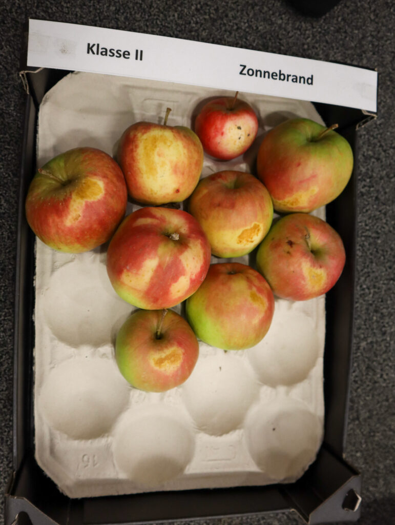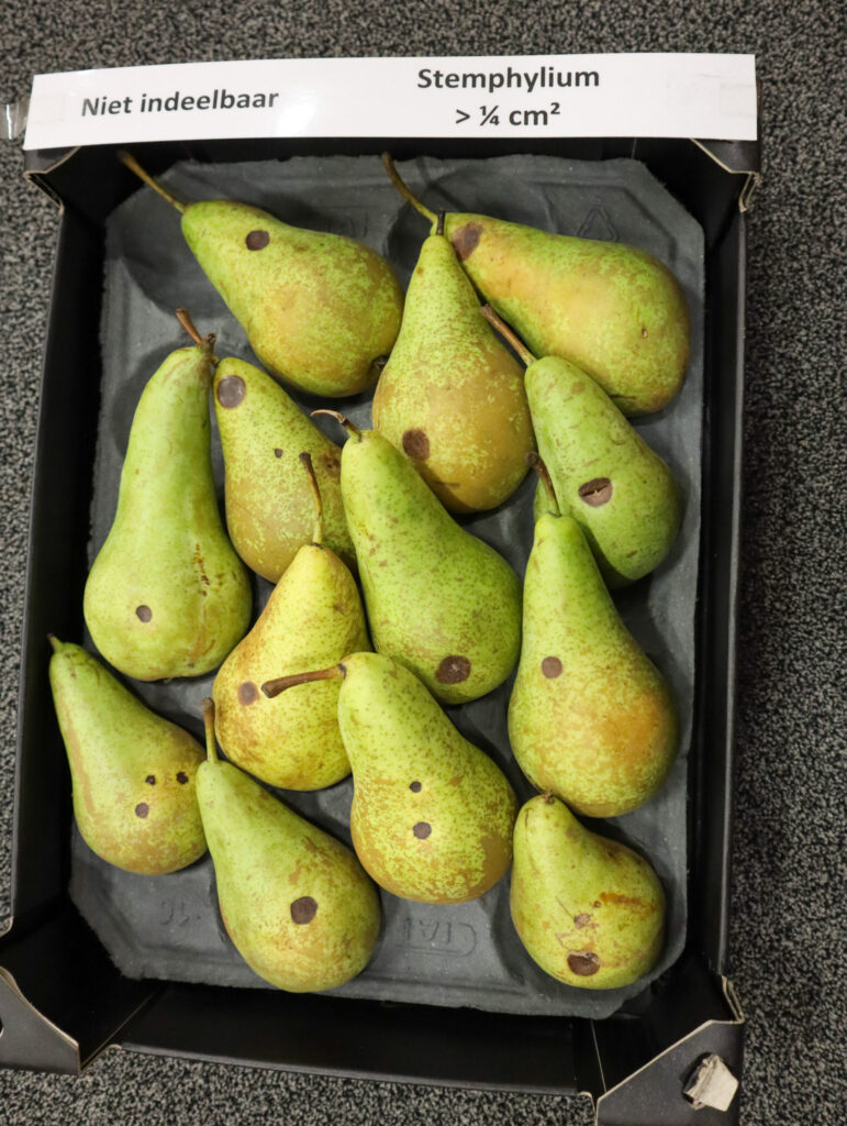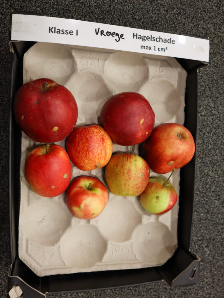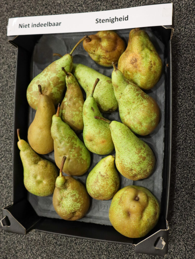 De verwachtingen voor dit jaar zijn dus positief; er worden minder kwaliteitsproblemen verwacht dan normaal. Via monsters van appels en peren werden de kwaliteitsgebreken die nog wel werden aangetroffen op een praktische en interactieve manier getoond aan de aanwezigen. “We zien her en der wat hagelschade, alhoewel dat niet buitensporig veel is”, zegt Van der Meulen. “Daarnaast komen we af en toe zwartvruchtrot in peer tegen, ook zien we dat het fruit vaker aan de rijpe kant is en een wat gelere kleur heeft. Doordat er veel fruit hing en telers niet altijd voldoende personeel konden vinden, waren sommigen wat later klaar met de oogst dan wenselijk was. Het is afwachten of er bij de rijpere appels en peren problemen gaan ontstaan in de bewaring; soms kan lange bewaring in dit geval effect hebben op de kwaliteit. Maar ondanks deze aandachtspunten zijn we zeker niet ontevreden over de hardfruitkwaliteit van dit jaar.”