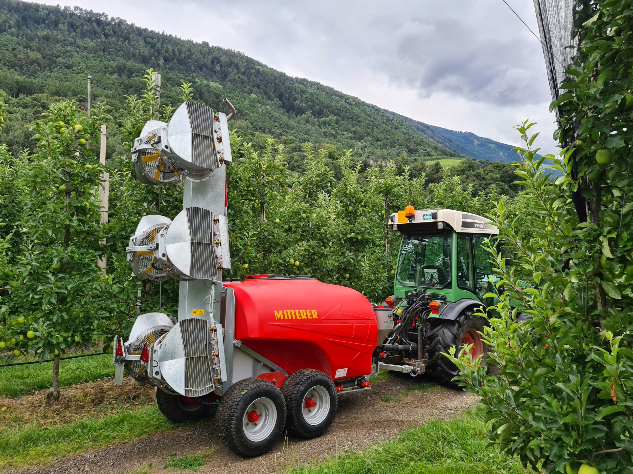 Voor de Mitterer-dwarsstroomspuit VR uitgerust met het Air Adjustment System (AAS) geldt dat deze in combinatie met spuitdoppen DRD-klasse 90% en aangepaste instellingen van de luchtondersteuning in de buitenste 4 rijpaden is ingedeeld in de DRT-klasse 99%. Overige instellingen zijn een maximaal ventilatortoerental van 1.100 rpm, vaste hellingshoeken van alle 6 ventilatoren (boven links en rechts -10°, midden links en rechts 0° en onder links en rechts +10°), eenzijdig bespuiten van de buitenste fruitgewasrij, alleen perceel inwaarts en een maximale rijsnelheid van 8 km/uur.