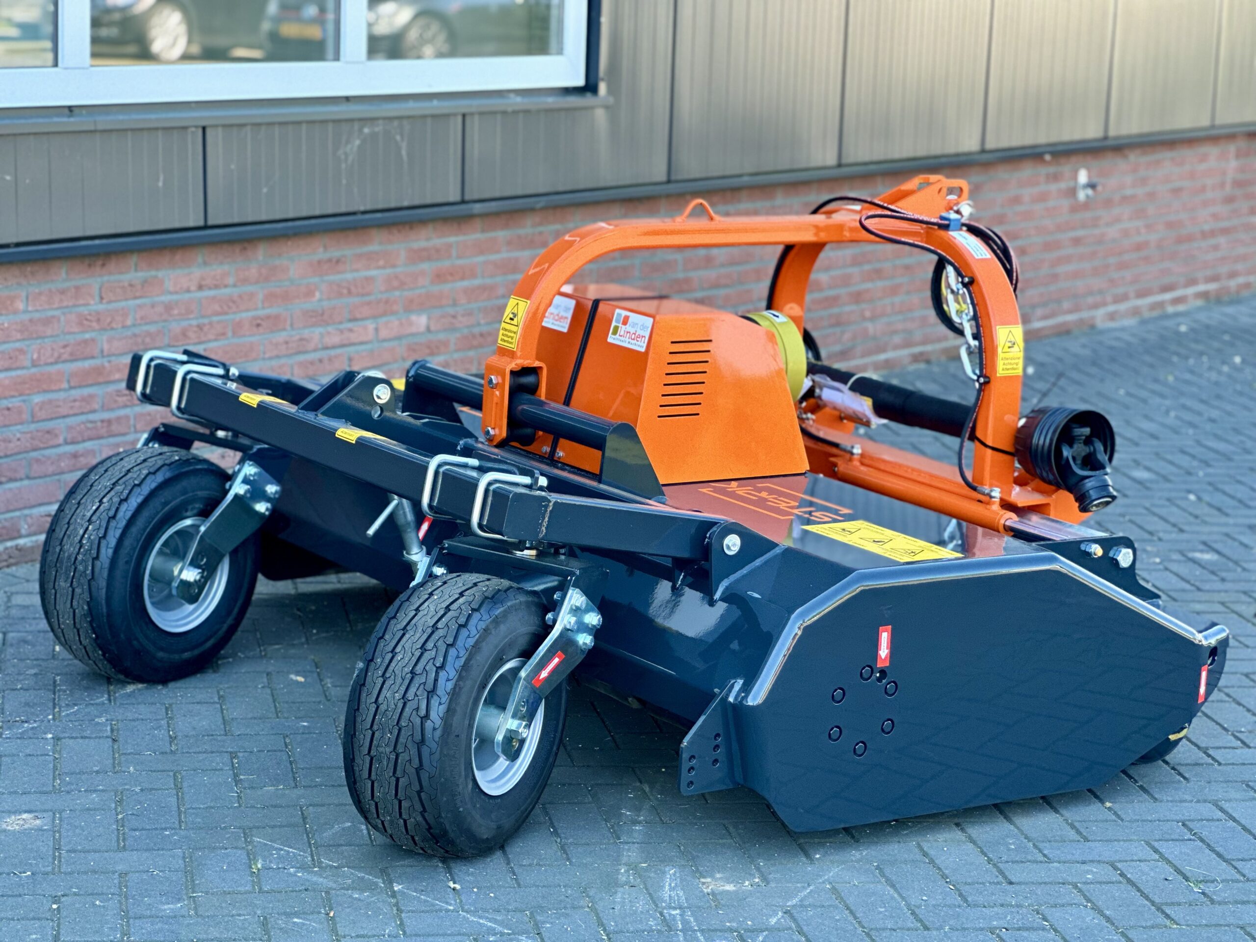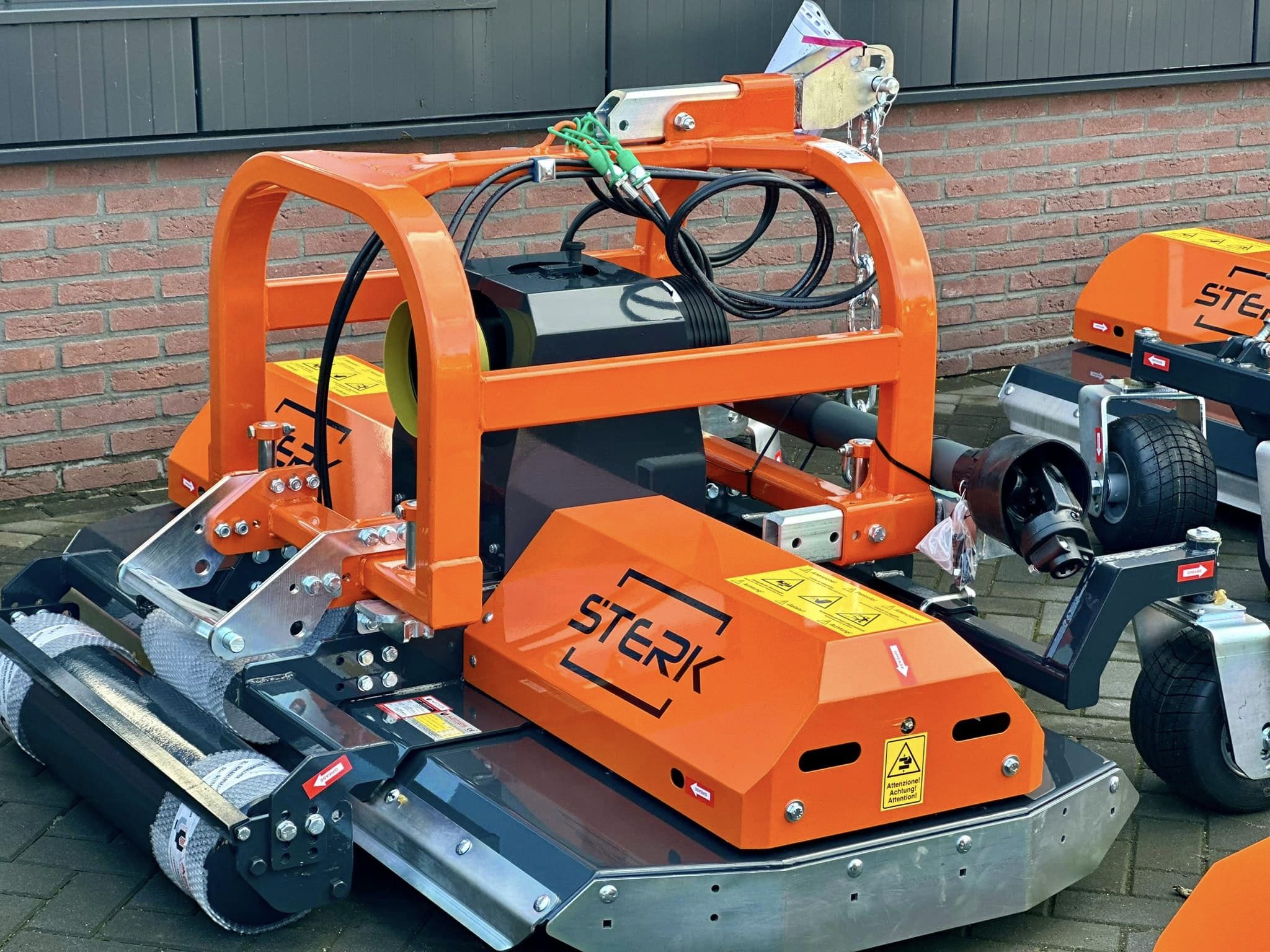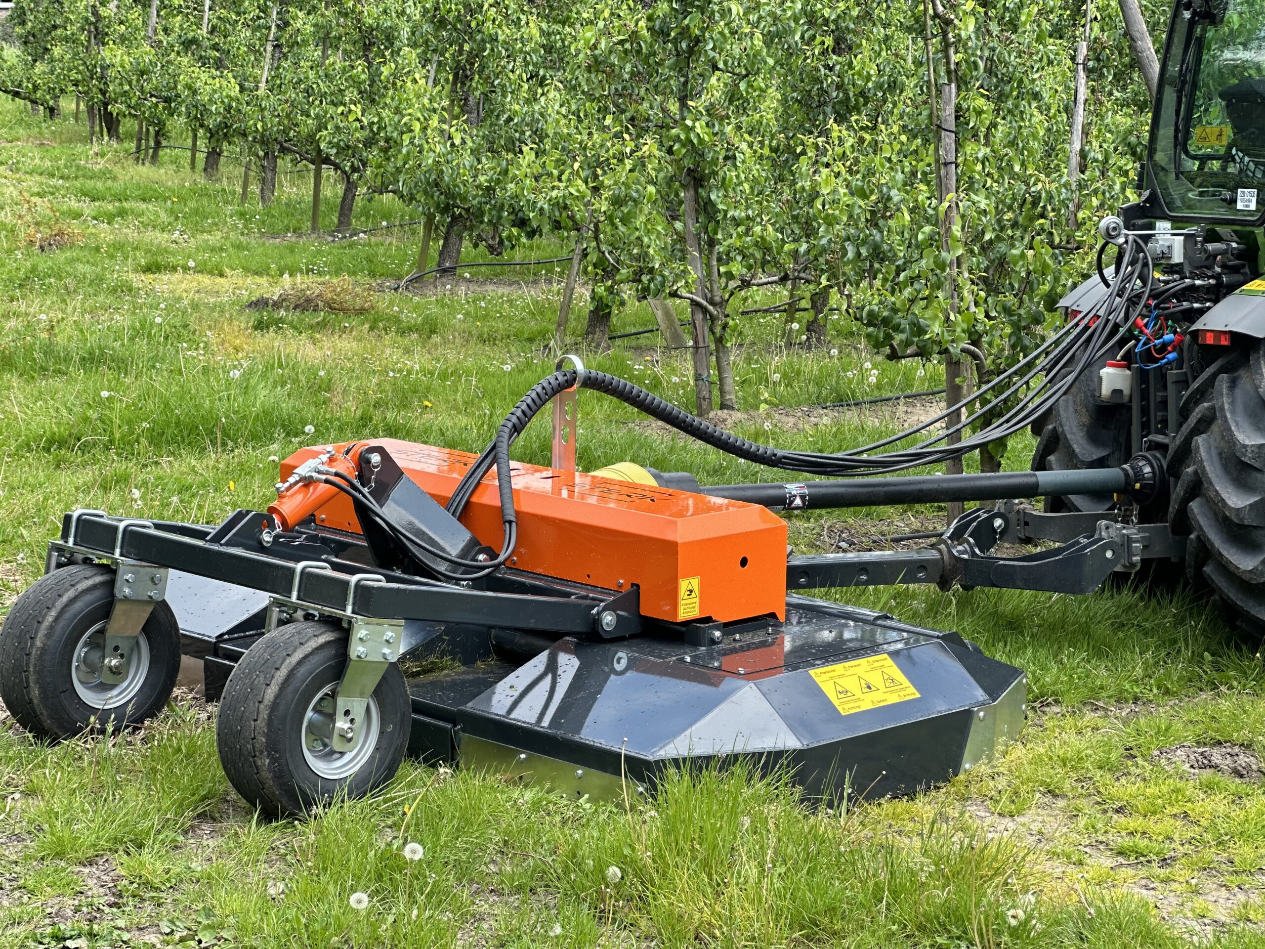 Deze week zijn bij Van der Linden Fruitteelt Machines nieuwe typen maaiers en versnipperaars binnengekomen. De steeds beperktere mogelijkheden voor chemische onkruidbestrijding vragen een andere aanpak en veel telers kiezen ervoor de grasbaan breder te laten en zo herbiciden te sparen voor het bespuiten van de (smallere) zwartstrook. Van der Linden Fruitteelt Machines speelt daarop in met de STERK getrokken maaimachine die hydraulisch uitschuifbaar is van 200 tot 270 cm. De maaiers waren al langer in breedte hydraulisch uitschuifbaar, echter is dit type nu voorzien van een knikdissel en een wielstel om de machine spoorvolgend te maken. Verder is deze nog zwaarder uitgevoerd dan de standaard STERK-maaier.