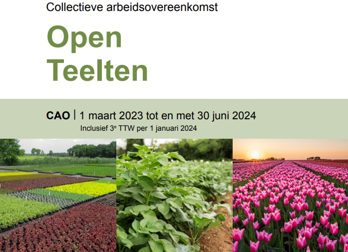 Vanwege de verhoging van het wettelijk minimumloon is de cao Open Teelten per 1 januari 2024 tussentijds aangepast. Binnen de cao is geen verhoging van de feitelijke lonen afgesproken, maar verhoging van de wettelijk minimumlonen zorgt ervoor dat een aantal loonschalen zijn aangepast, omdat deze anders onder het wettelijk minimumloon zouden vallen. De aanpassingen zijn inmiddels doorgevoerd in de nieuwe versie van het cao-boekje Open Teelten. Dit is te downloaden via werkgeverslijn.nl.