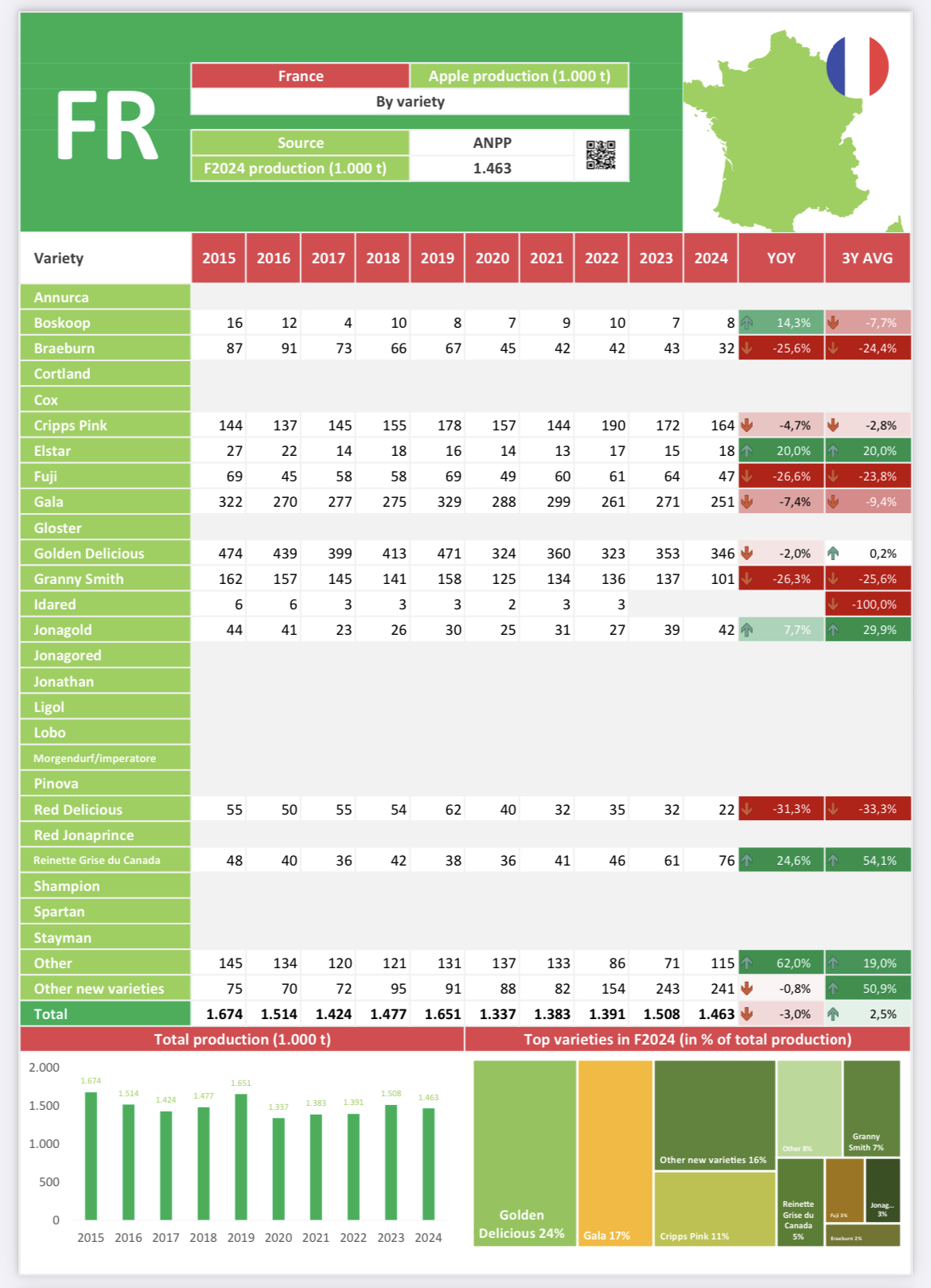 - Frankrijk: 1.463.000 ton (14% van totale Europese productie)