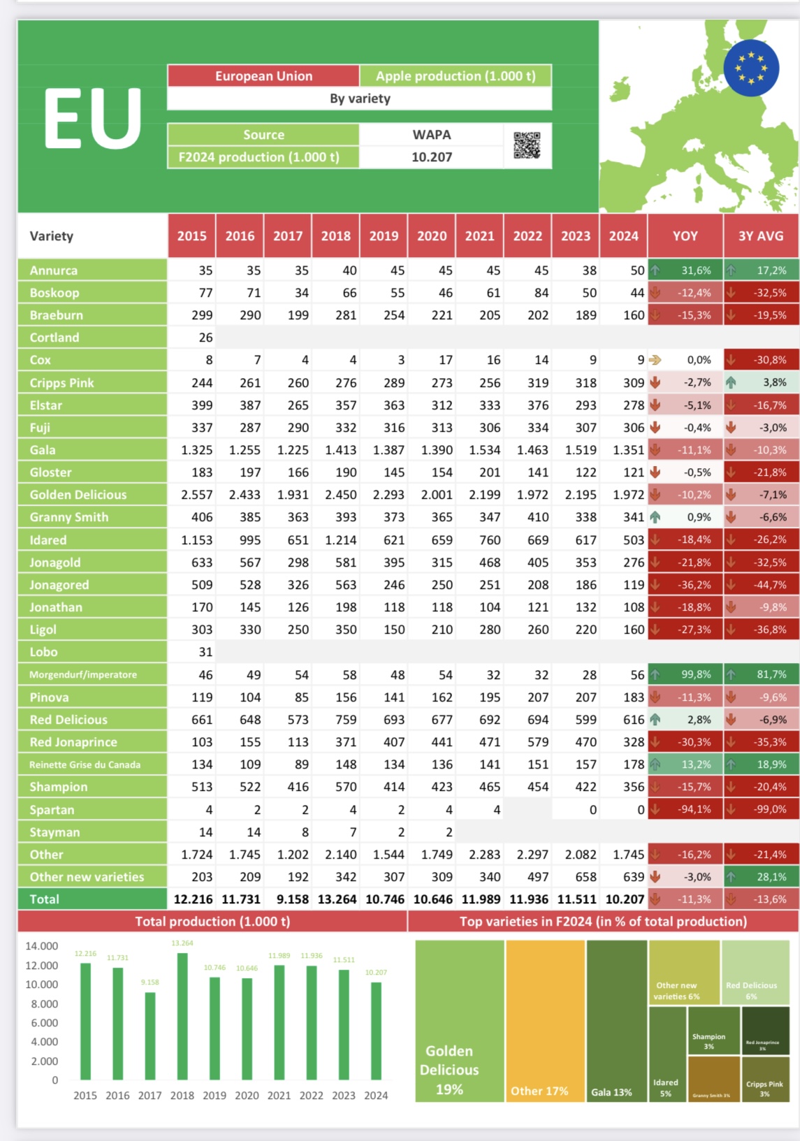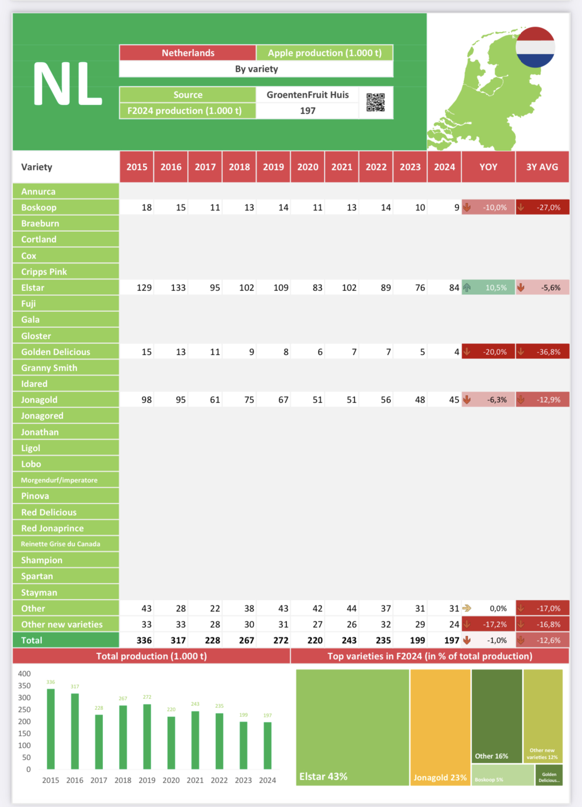 - Nederland: 197.000 ton = 2% van Europese appelproductie