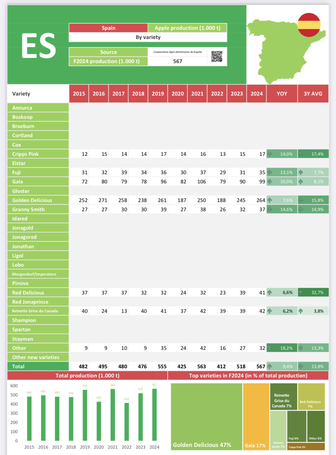 - Spanje: 567.000 ton (6% van totale Europese productie)