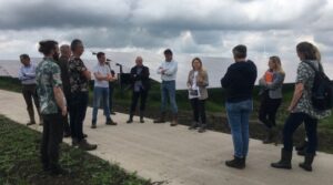 De studiegroep Biodiversiteit is op woensdag 10 mei weer van start gegaan. Zo’n tien fruittelers uit alle delen van het land waren te gast op het bedrijf van Roy en Angenita Gieling in Zeewolde. Op het bedrijf zijn genoeg zaken aanwezig om als telers onderling te sparren over welke aanpak je volgt om de biodiversiteit op je bedrijf te stimuleren. Een opvallend onderdeel in deze aanpak is het zonnepark dat sinds dit jaar is gerealiseerd op het bedrijf.