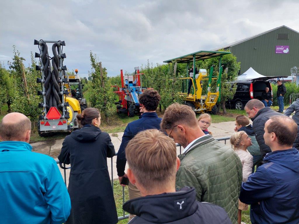 Duurzaam fruittelen, dat was het thema van Dé Perendag die op 5 juli in Krabbendijke georganiseerd werd bij Vogelaar Fruitcultures. Meteen bij binnenkomst liepen bezoekers aan tegen de stands die samen het Emissieplein vormden. Daar was alle informatie te vinden over het veilig en verantwoord omgaan met gewasbeschermingsmiddelen en het voorkomen van emissie. Demonstraties van nieuwe technieken, toegelicht door Flores Eversdijk, een infomarkt met meer dan 90 standhouders en rondleidingen langs demoproeven vormden de vaste succesvolle formule en tussendoor was er volop gelegenheid voor ontmoetingen, netwerken en gezelligheid voor jong en oud.