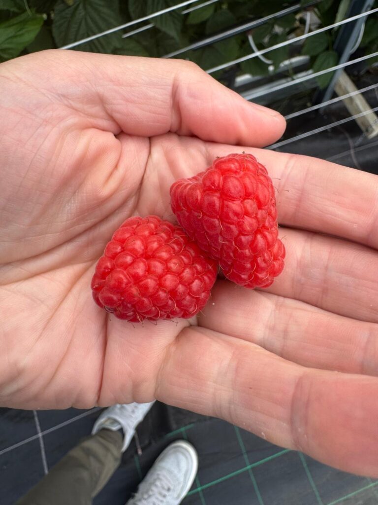 Bij Berrybrothers in Roggel werd dit voorjaar een kasproef opgezet met 10.000 planten van Pink Rosita (Plapink 1304). Begin september konden de eerste vruchten worden geoogst van het herfstframbozenras. “Telers, retailers en andere geïnteresseerden konden vorige week een kijkje nemen bij Berrybrothers”, vertelt Sjoerd van Gestel van Planasa. “Omdat er nog weinig harde data uit proeven beschikbaar zijn, wilden we hen de kans geven om het ras zelf te bekijken en er een gevoel bij te krijgen. Zeker omdat Berrybrothers zeer enthousiast is over de Pink Rosita.”