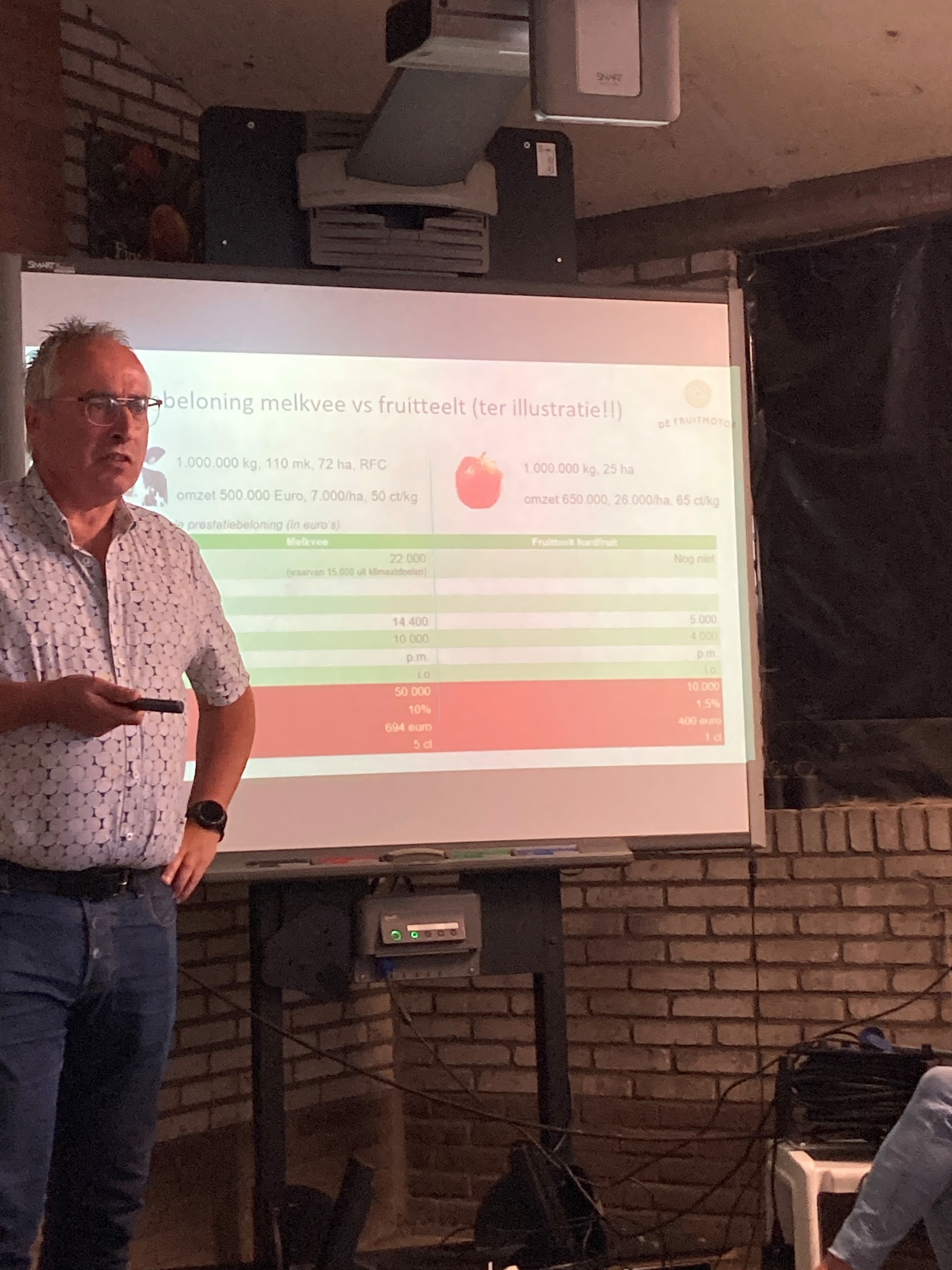 Henri Holster van de Fruitmotor sprak over een nieuwe waardering voor de fruitteler. Duurzaam telen brengt risico’s met zich mee voor fruitteler. Daarvoor zullen telers gewaardeerd en beloond moeten worden. Dat vraagt een ander verdienmodel, onder andere via een meerwaarde voor het product en (sociale) waardering voor de fruitteler.