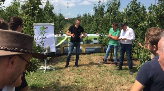De Demodag Precisiefruitteelt werd georganiseerd vanuit het Kennis op Maat-project ‘Fruit 4.0 Precisiefruitteelt, van onderzoek naar praktijk’ en vond plaats bij Vogelaar Fruitcultures in Krabbendijke. Naast de bodemscanner werden tal van nieuwe ontwikkelingen op gebied van precisiefruitteelt gedemonstreerd om fruittelers te informeren over de praktijktoepassingen. Binnenkort leest u een artikel hierover in Fruitteelt.