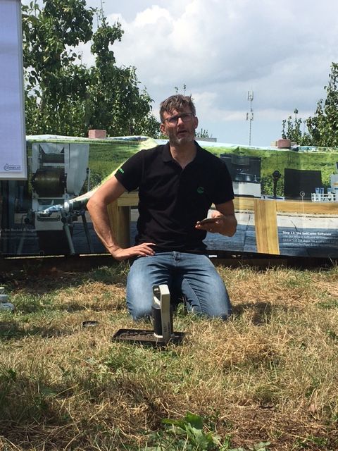 Een nieuwe ontwikkeling die getoond werd op de Demodag Precisiefruitteelt op 12 juli is de handscanner van Agrocares, waarmee de bodem gemeten kan worden op inhoudsstoffen. Een teler die gebruik maakt van de scanner moet nog wel zelf eerst een bodemmonster steken. Na het mengen van de grond kan deze vervolgens gemeten worden. Voor een betrouwbare meting worden eerst twee calibraties uitgevoerd waarna met vijf scans een analyse van de bodem wordt gemaakt. Met een bijbehorende app wordt de gebruiker door het proces geloodst en krijgt hij de analyse-uitslagen binnen.