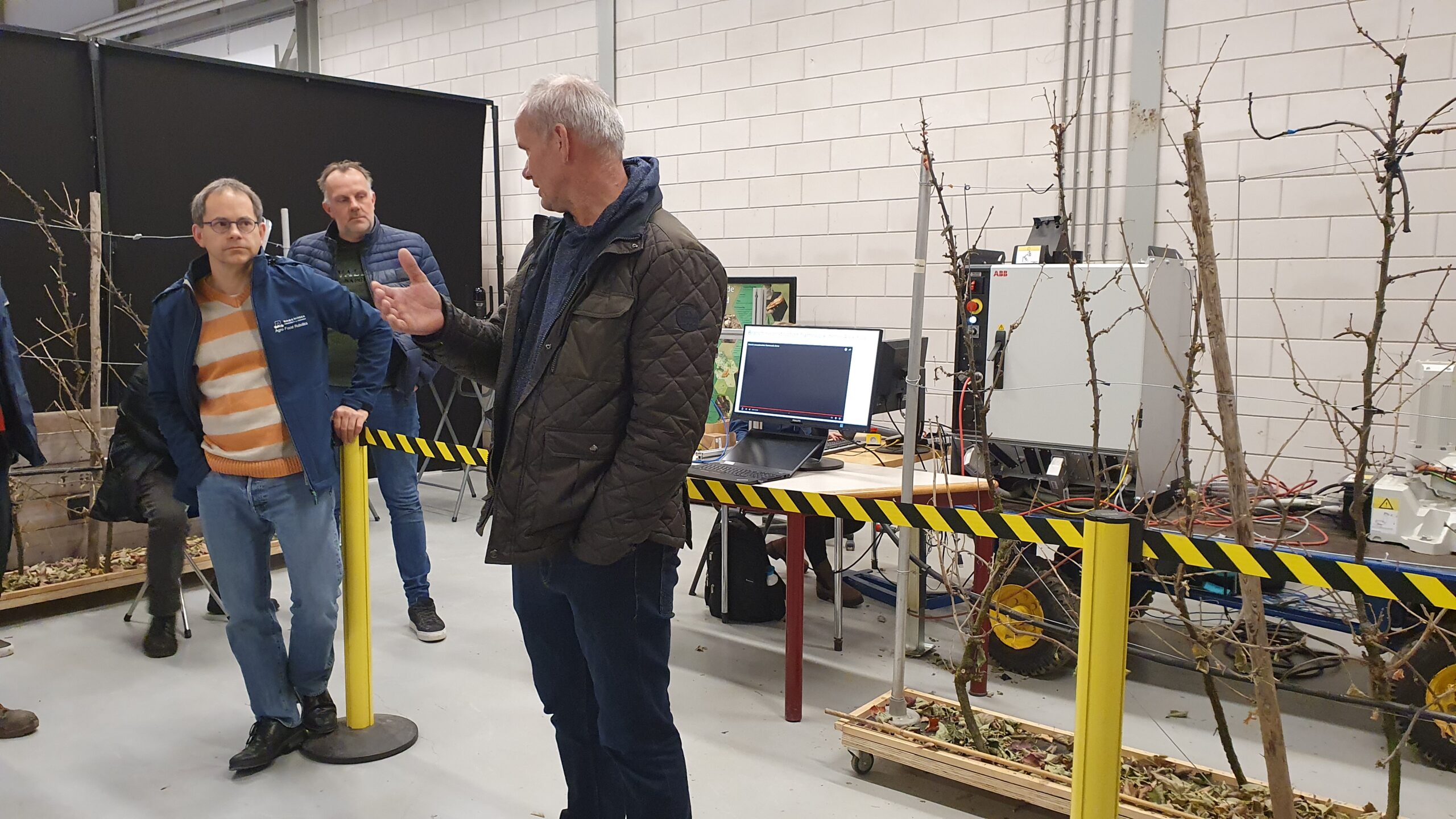 OnePlanet Research Center is een multidisciplinair samenwerkingsverband tussen Wageningen University & Research (WUR), Radboud Universiteit, Radboudumc en nano-technologie wereldspeler Imec. Bas Boom is Computer Vision-onderzoeker bij OnePlanet en nam de aanwezigen mee in welke type sensoren er zijn én in hoe deze toegepast kunnen worden in de ontwikkeling van toepassingen voor de rodebessenteelt. Hij liet opnamen zien die met diverse cameratypes gemaakt zijn van bessenstruiken. De camera’s worden toegepast om de structuur van het gewas te tonen en de leeftijd van het hout in te kunnen schatten. De meeste van deze camera’s komen uit de automotive industrie. Bas zijn conclusie tot nu toe is dat voor het kunnen realiseren van een snoeirobot meerdere camera’s gecombineerd moeten worden voor het ophalen van bruikbare beelden.