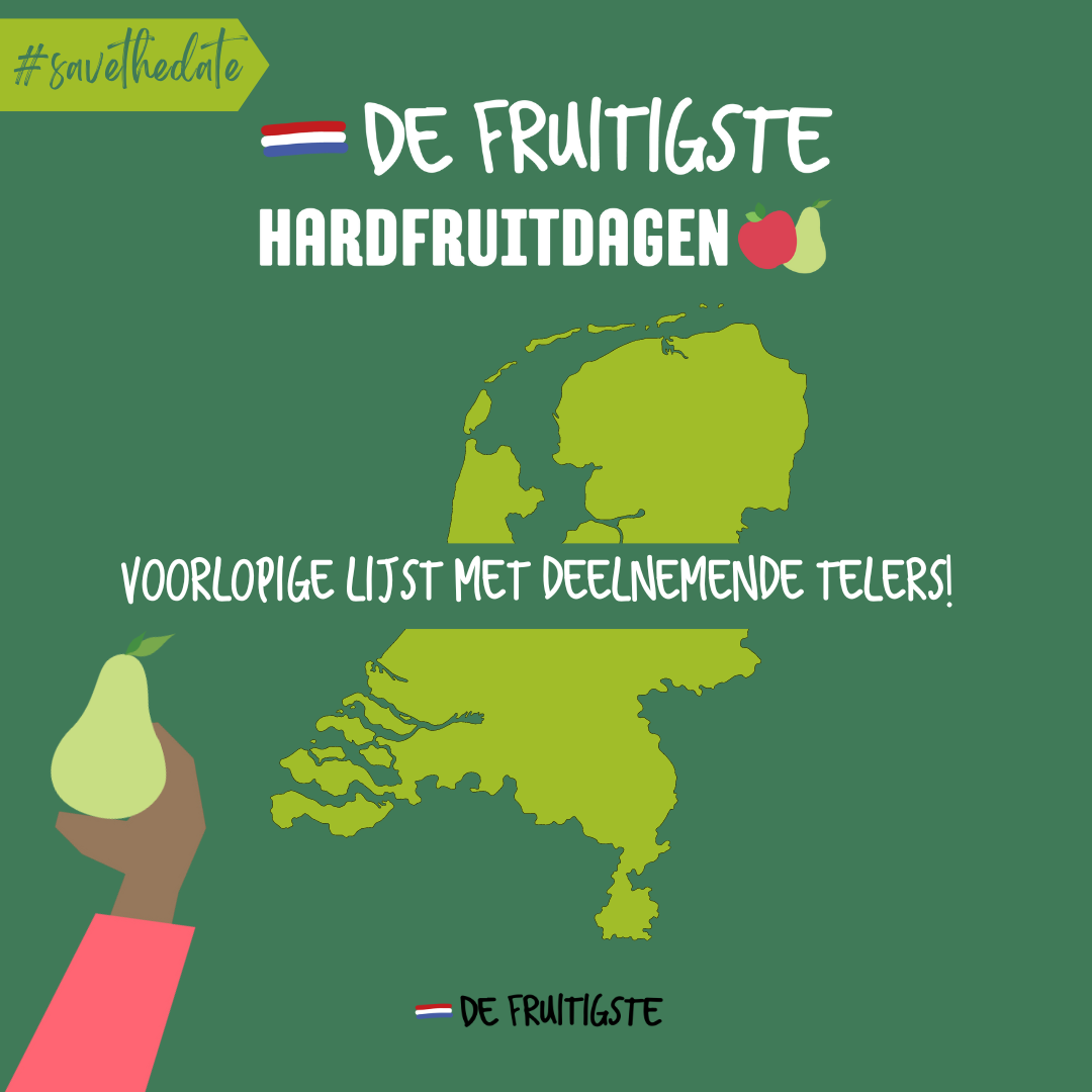 De Fruitigste Hardfruitdagen komen er weer aan! In zeven weekenden – verspreid over de periode tussen 31 augustus en 12 oktober – openen ruim dertig hardfruittelers hun deuren c.q. boomgaarden voor het grote publiek. Consumenten kunnen kennismaken met al het moois dat onze sector te bieden heeft. Daarnaast zijn er tal van speciale activiteiten. Daarnaast worden de Hardfruitdagen gekoppeld aan andere events, namelijk de ‘Internationale Eet een Appel-dag’ (15 september), de ‘Ontmoet de Boer-dag’(12 oktober) en de Week van ons voedsel (voorheen Dutch Food Week (5 t/m 12 oktober).