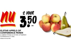 In Fruitteelt 18 leest u deze week in Marktzicht het bericht ‘Elstar bescheiden in aanbieding’. Tot twee weken geleden (het moment van schrijven van Marktzicht) waren de actieprijzen voor Elstar, met € 1,79 en € 1,66 bij de diverse supermarkten, nog zeer gematigd. In vergelijking met enkele jaren geleden waren dit allerminst actieprijzen, maar wel vergeleken met het gebruikelijke niveau van zo’n twee euro. Inmiddels zijn de actieprijzen scherper geworden. Zo kon je bij Jumbo afgelopen week 2 zakken Elstar van 1,5 kg kopen voor € 3,50, dat is €1,17 per kg (afgeprijsd van € 1,99 per kg). De actieprijzen bij andere supermarkten waren minder scherp, maar hoefde de consument ook minder grote hoeveelheden tegelijk in te kopen. Bij Dirk bedroeg de actieprijs de afgelopen week € 1,89 per zak van 1,5 kg (€ 1,26 per kg) en bij de Aldi kost een zak met 1,5 kg Elstar op dit moment € 1,99 (€1,33 per kg).