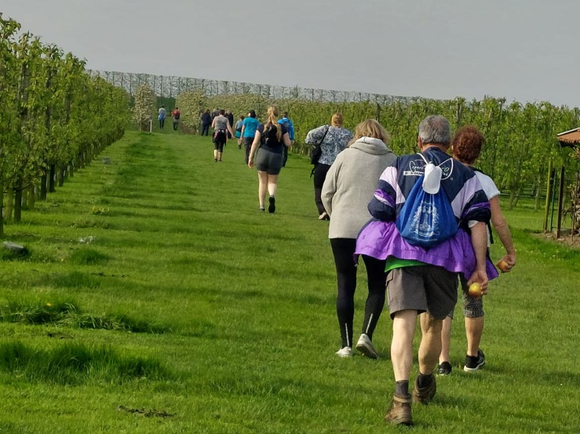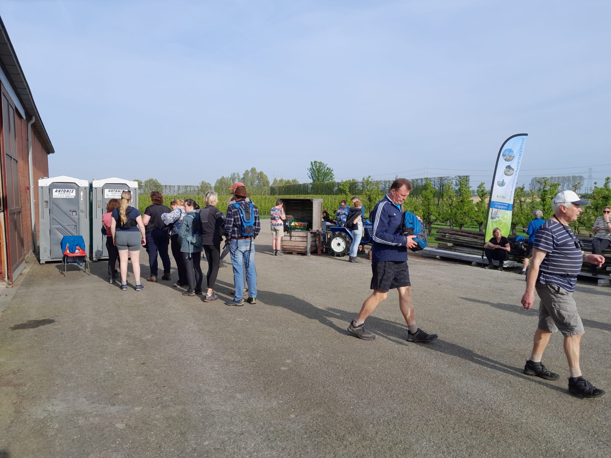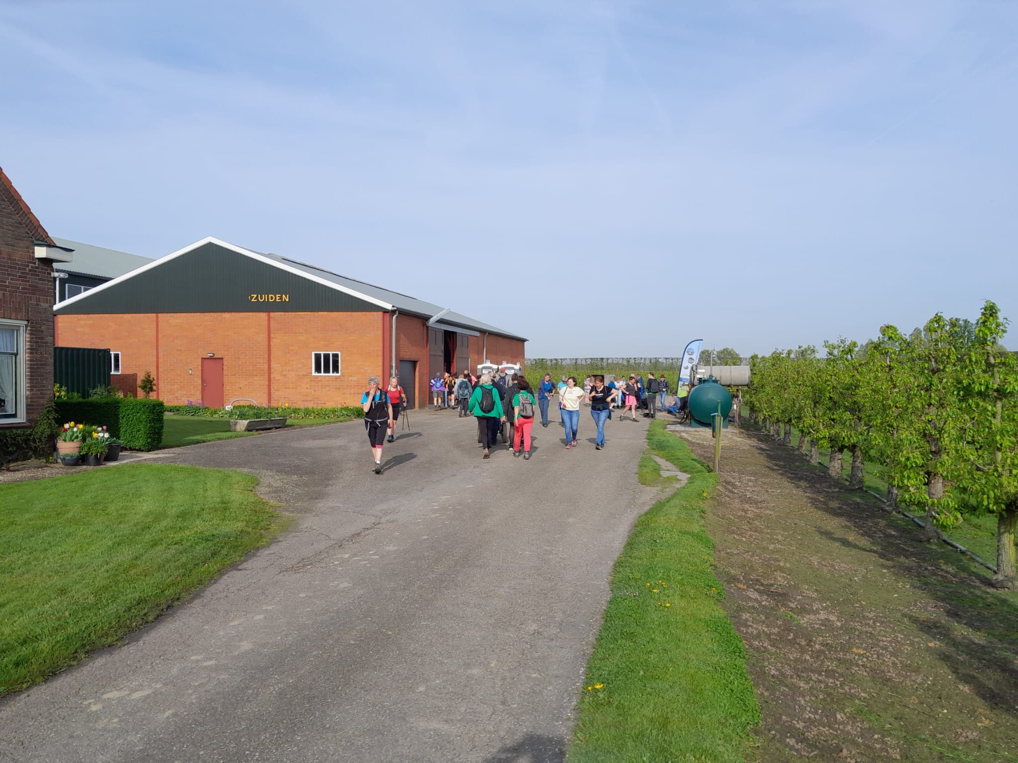 Op het bedrijf van de familie Kruythoff was een tussenstop met koffie en appeltaart en sanitaire voorzieningen. “We deelden lekkere, verse Elstar uit. Dat werd heel positief ontvangen. Burgemeester Van Egmond had eerder die ochtend het startsein in Krabbendijke gegeven en liep mee tot ons bedrijf. Zij was enorm geïnteresseerd en stelde veel vragen. Vooral over het voedsel produceren dichtbij de consument.”