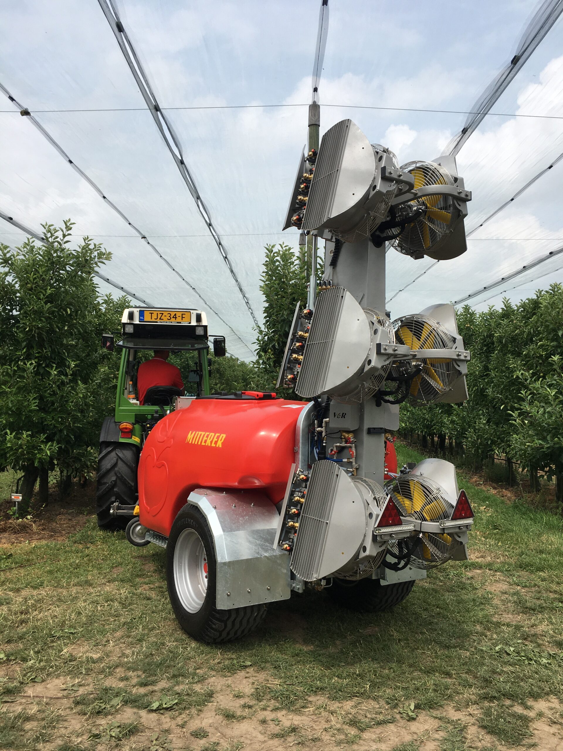 De Mitterer V6R heeft een tankinhoud van 1.650 l. De ventilatoren zijn voorzien van een innovatieve hydraulische aandrijvingen en worden onafhankelijk van de aftakas aangedreven. De ventilatorsnelheid kan vanuit de trekker worden aangestuurd. De machine past de dopafgifte automatisch aan aan de rijsnelheid.