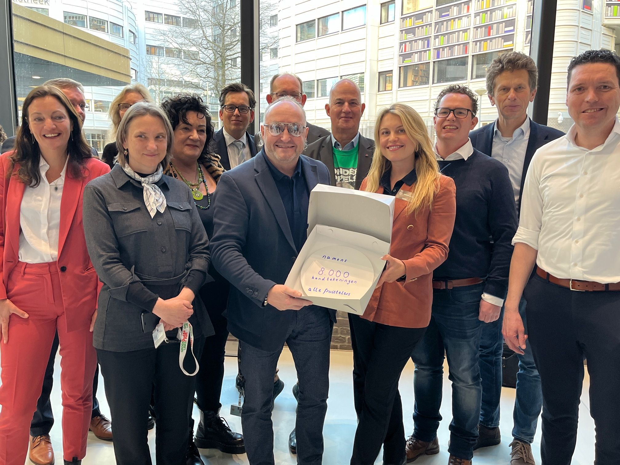 Onder belangstelling van Kamerleden van een groot aantal partijen is vanmiddag de petitie Red de Nederlandse appel overhandigd in het gebouw van de Tweede Kamer in Den Haag. Biologisch fruitteler Amber Elisa de Clercq overhandigde de 8.000 handtekeningen namens de sector symbolisch met een lege taartdoos; zonder appels immers geen taart. Het aantal handtekeningen laat zien dat de petitie door de hele sector wordt gedragen.