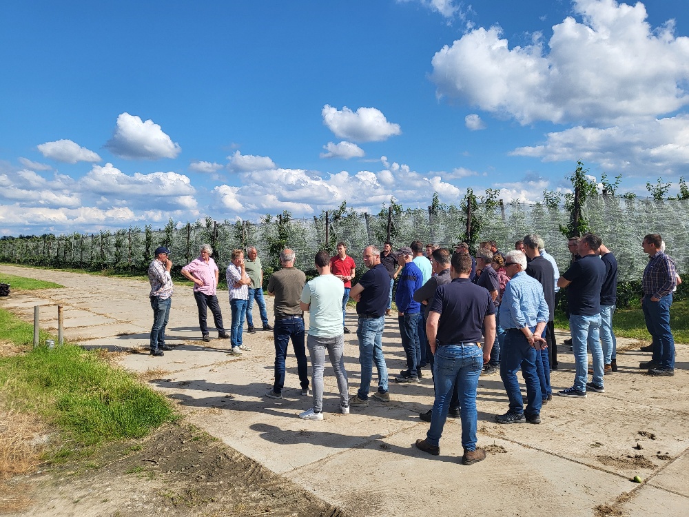 Onderzoeker Sep Bregman van Wageningen UR vertelde over het onderzoek dat loopt in Randwijk rondom het bepalen van de optimale droogtestress van een fruitboom. Wanneer het optimum kan worden gerealiseerd qua droogtestress en dus qua watergift, kan water en arbeid worden bespaard en komt dit de productie ten goede. Dit onderwerp sprak aan; er kwamen veel vragen en reacties.