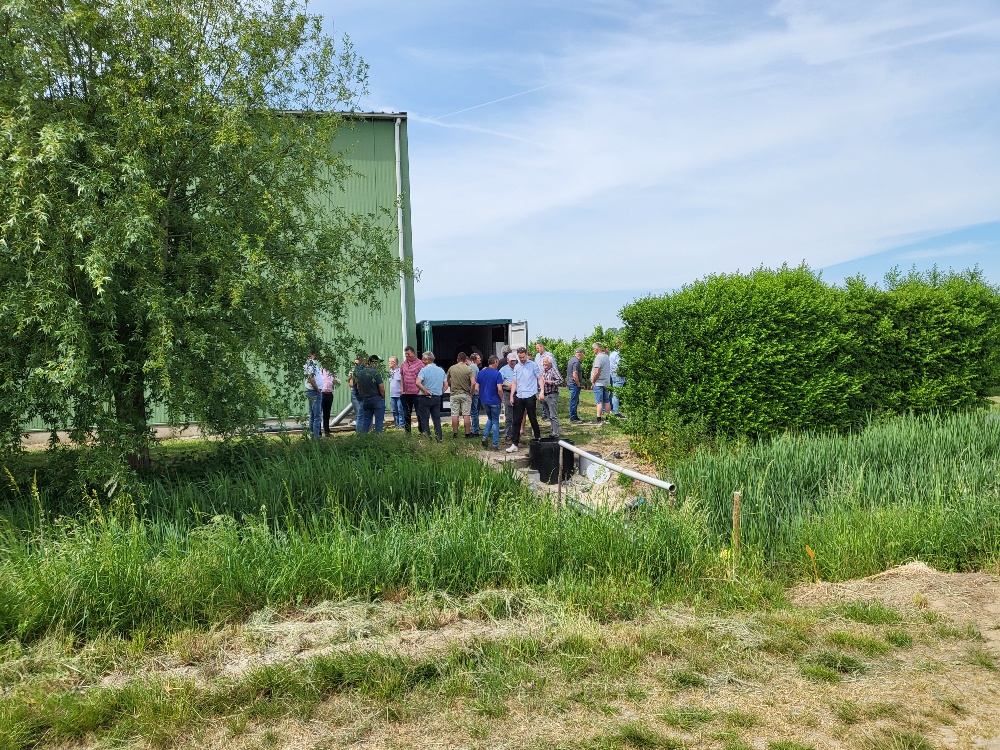 De dag werd afgetrapt met een bezoek aan fruitbedrijf Steijn-Bal in Kwadendamme. Op dit bedrijf wordt met een diepdrain zoet water gewonnen dat op zes meter diepte zit. Een ontijzeringsinstallatie haalt vervolgens het vele ijzer eruit. Het water wordt daarna gebufferd in een silo en – na toevoeging van zuur en meststoffen – de boomgaard in gebracht. Het bedrijf werkt ook al meerdere jaren met bodemvochtsensoren. Daarnaast is één perceel ingericht met dubbele irrigatieslangen, wat heeft geresulteerd in een andere irrigatiestrategie. René Bal van het bedrijf leidde de Waterkaravaan-deelnemers rond en gaf een toelichting op de verschillende installaties en fertigatie-strategieën.